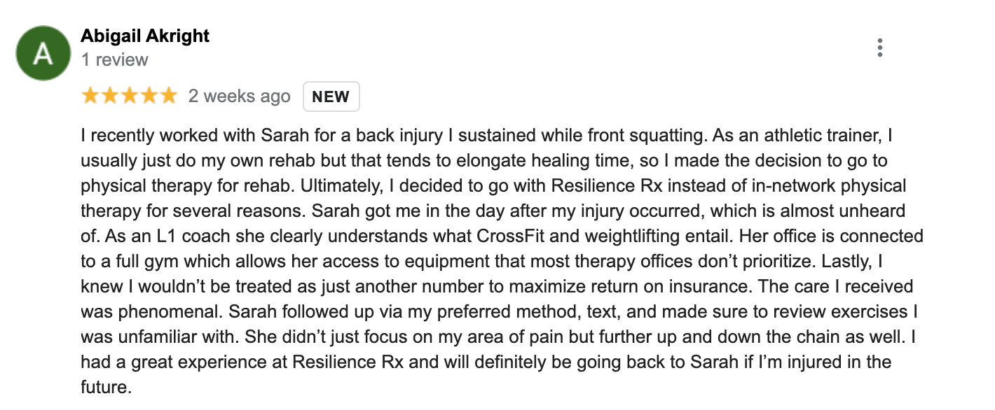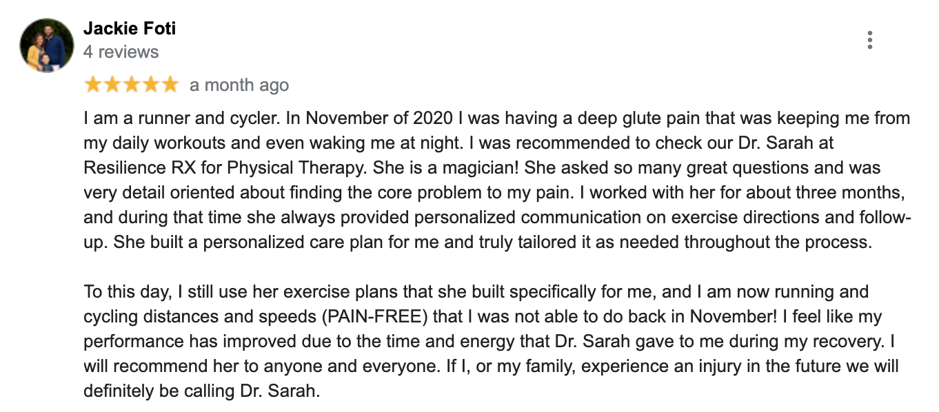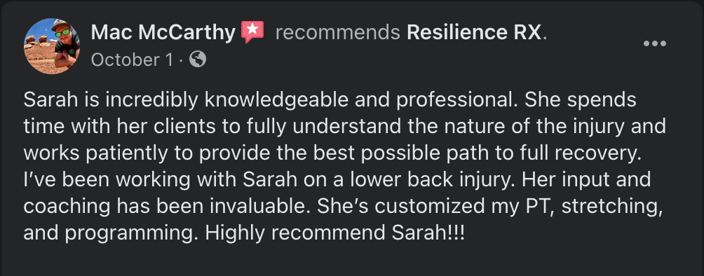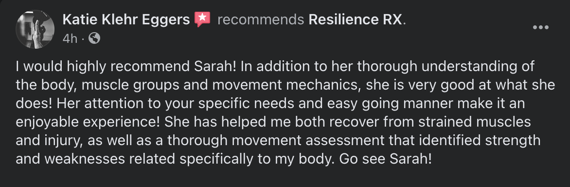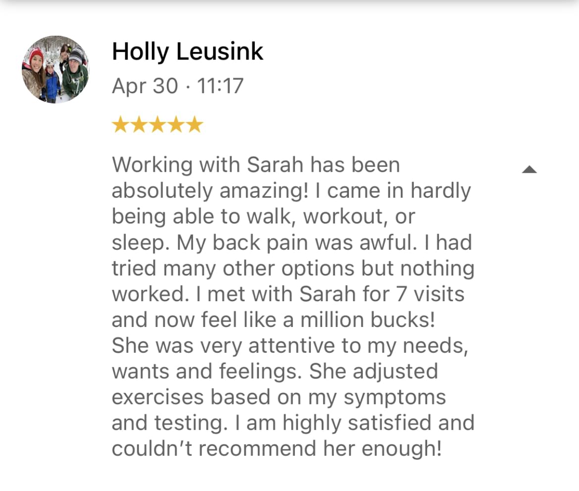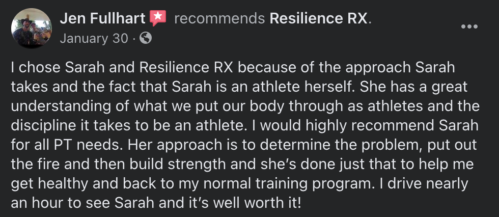 -Get a full, 1 hour long assessment with Dr. Sarah Sawall.-She is a medical professional who has an extensive background in strength/conditioning work with high school, recreational, and Olympic-hopeful athletes.